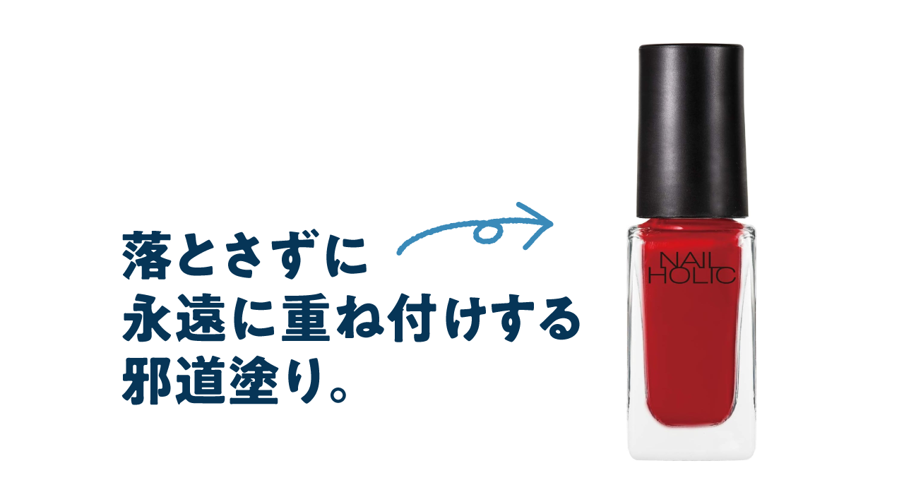 超短時間のお手入れを叶えているのは、ドラッグストアなどで200〜300円で購入できる、コーセーの「ネイルホリック(色番RD400)」のおかげ。
