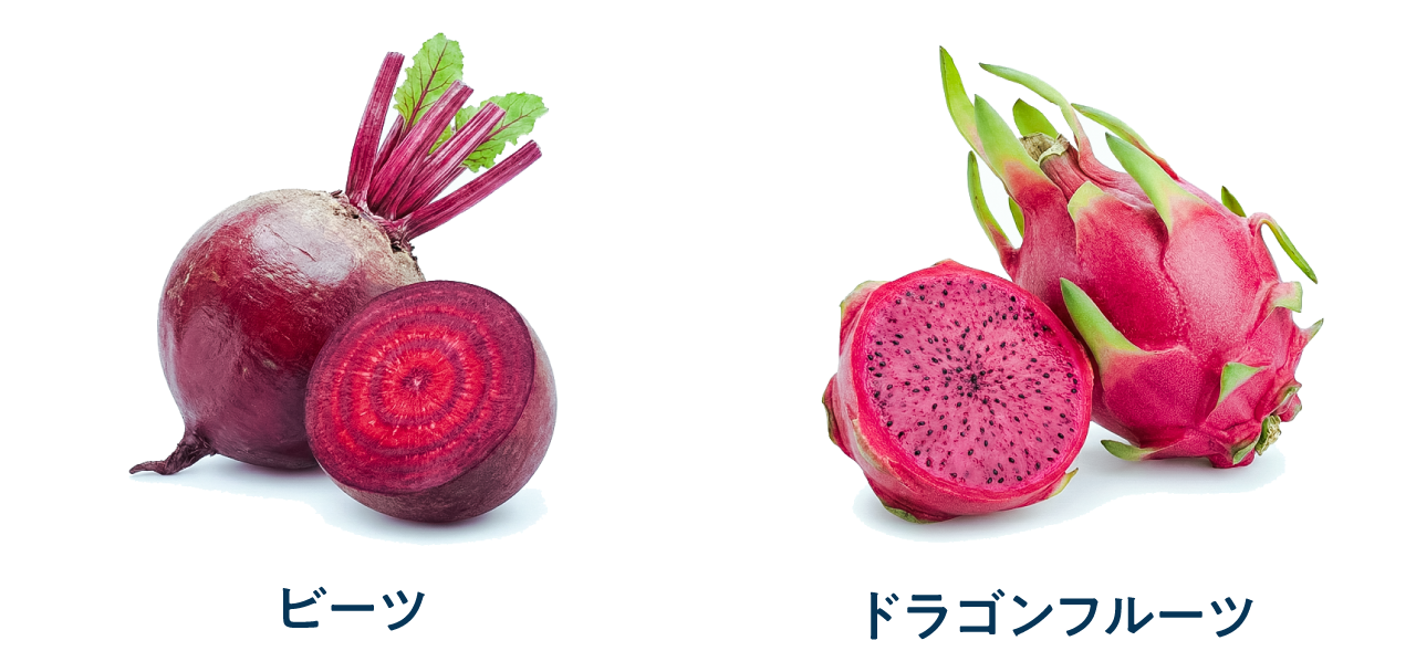 ビーツやドラゴンフルーツの鮮やかなピンク・赤紫色をつくり出しているのが、「ベタシアニン」という天然色素。