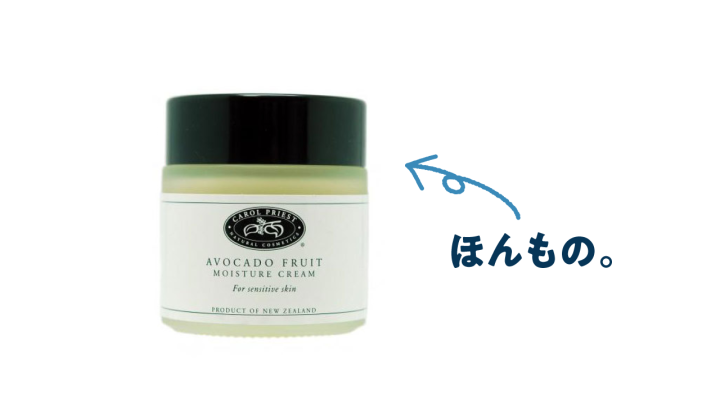 キャロルプリーストの「モイスチャーシールドクリーム(アボカド)」というクリームを使い始めたという記事だった。