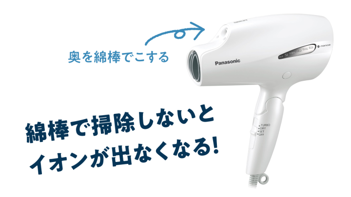 ちなみに、ナノケアのようなイオンドライヤーは、イオンの吹出口のお手入れも忘れずに。月に1回、綿棒で掃除しないと、イオンが発生しない原因になる。詳しくは以下の記事で取り上げた。