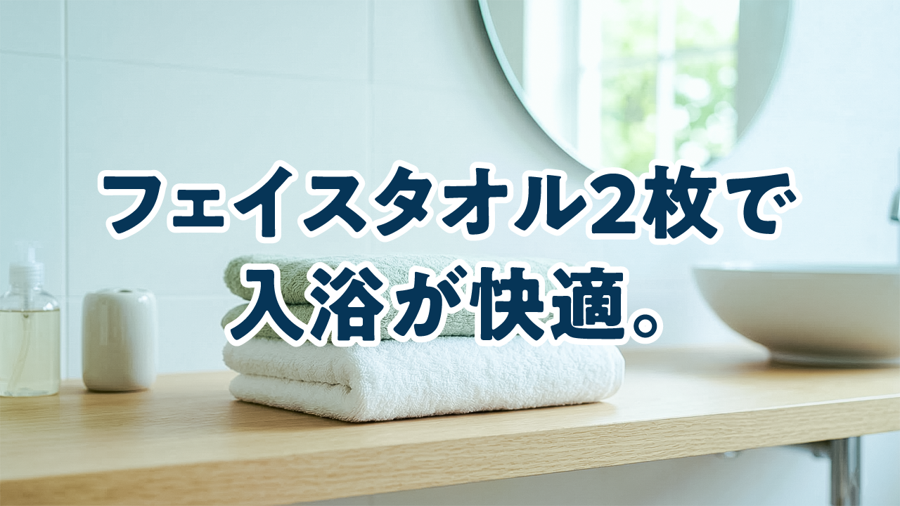 入浴時にバスタオルは使わない。バスマットも不要でフェイスタオル2枚あれば十分