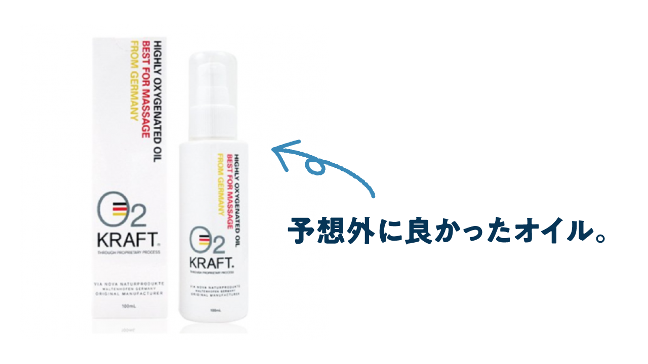 「酸素オイル O2 KRAFT(オーツークラフト)」が良かった。むくみ減で痩せるダイエット効果・肩こりにも